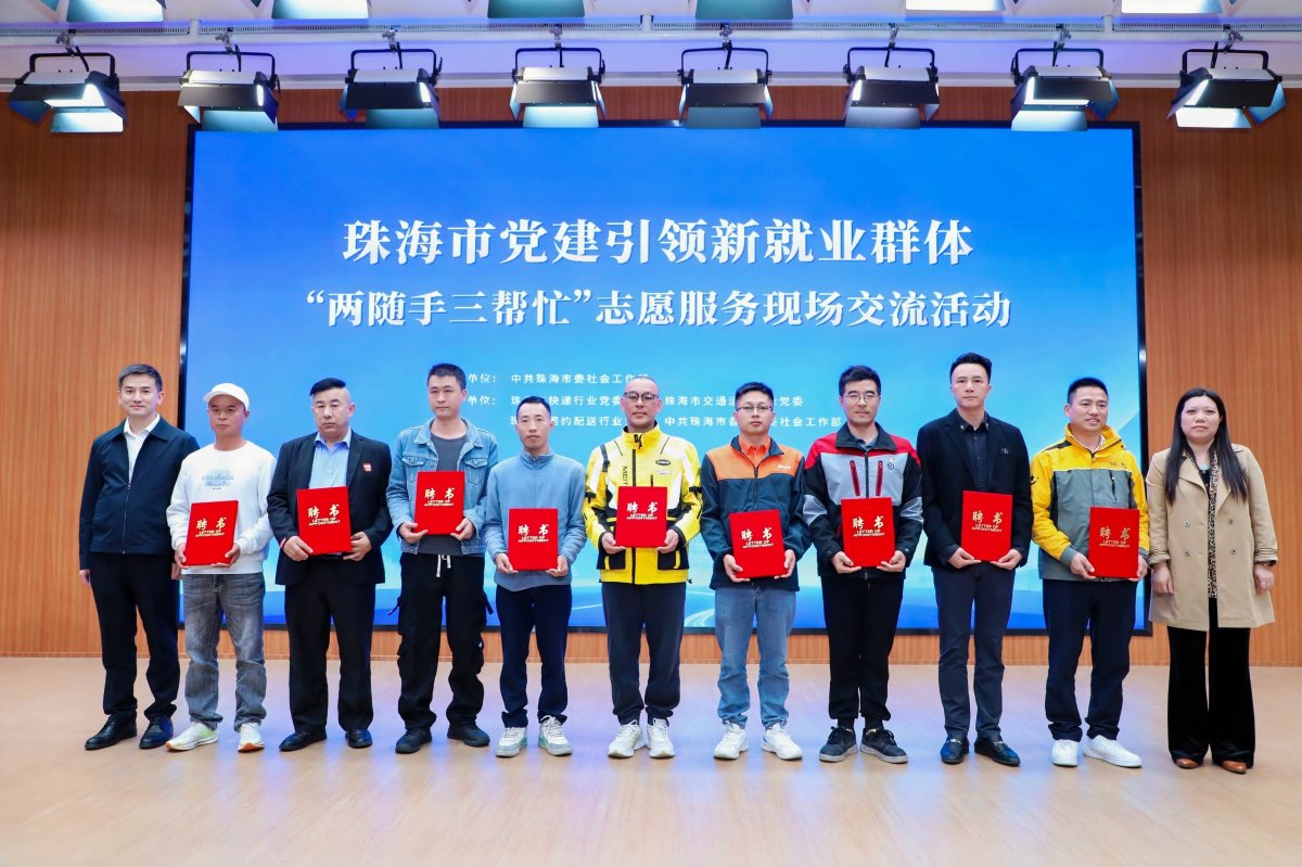 活动现场,专题宣传片生动展现了珠海以党建为引领,推动新就业群体从“城市服务者”向“治理参与者”转变的生动实践。市快递行业党委、市交通运输行业党委、市网约配送行业党委立足“管行业也要管党建”职责,分享了以党建赋能行业服务提质、凝聚新就业群体合力的创新举措;香洲区前山街道、翠香街道紫荆社区结合基层治理实际,交流了联动新就业群体参与协同共治的鲜活经验;4名优秀新就业群体志愿者代表以朴实真挚的语言,讲述了投身“两随手三帮忙”志愿服务的亲身感悟与责任担当,彰显了新时代新就业群体的使命情怀。活动为“两随手三帮忙”志愿服务队队长颁发聘书,进一步激发了新就业群体参与志愿服务的积极性与自豪感。