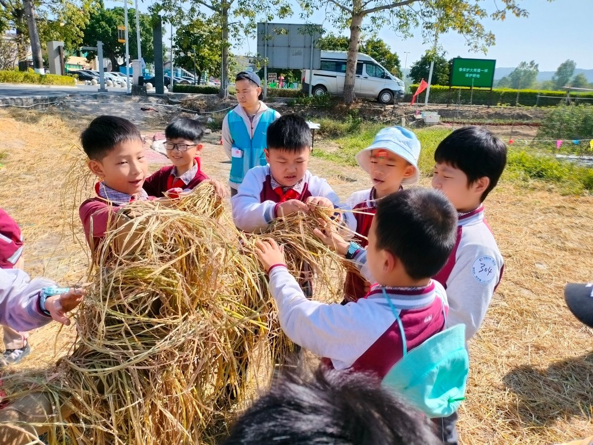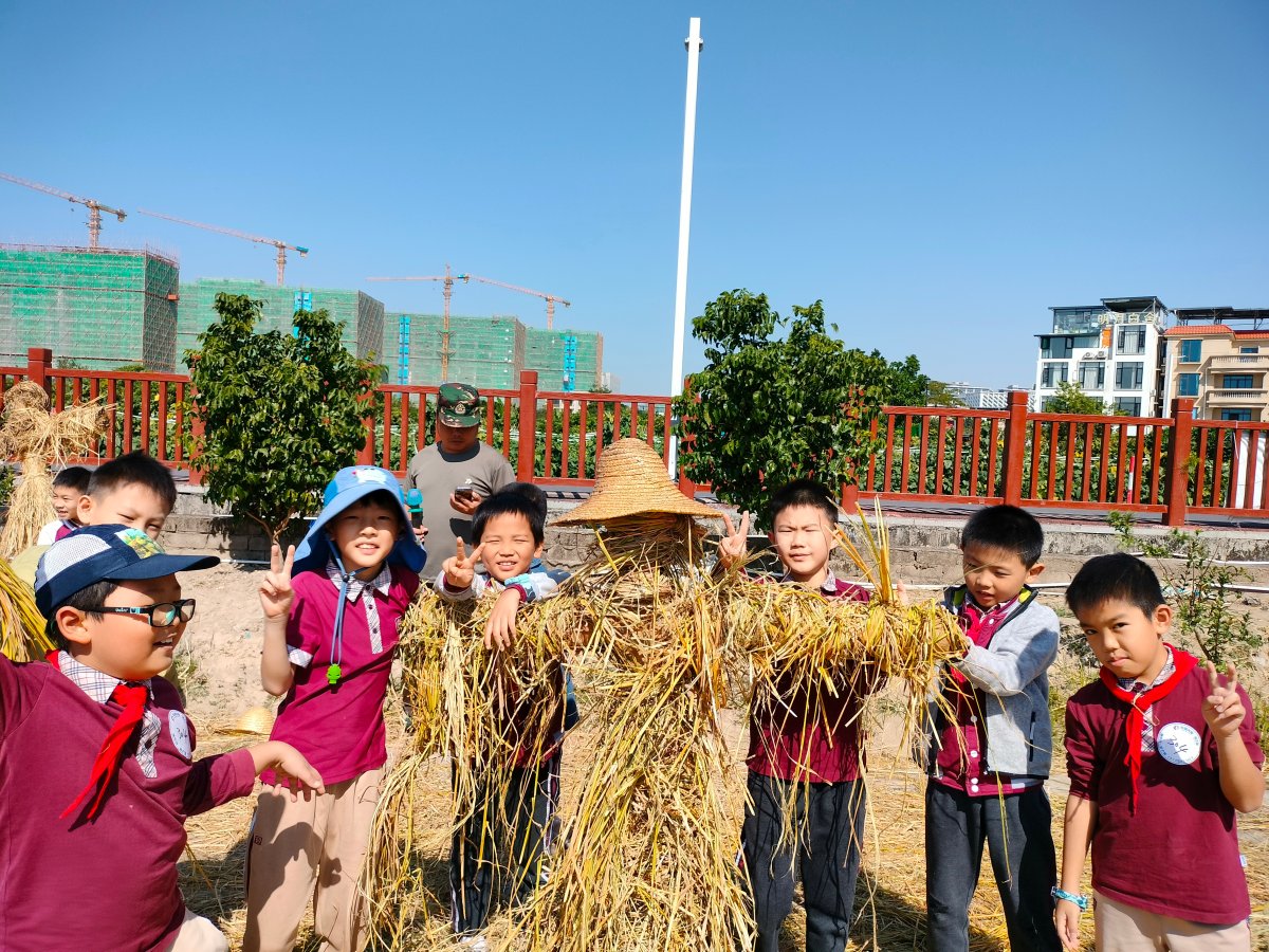 “编稻草人那个需要找很长的稻草,然后搭起来,还需要打结,打结有可能会松,我们通过班级集体的力量,完成了这一项任务。”