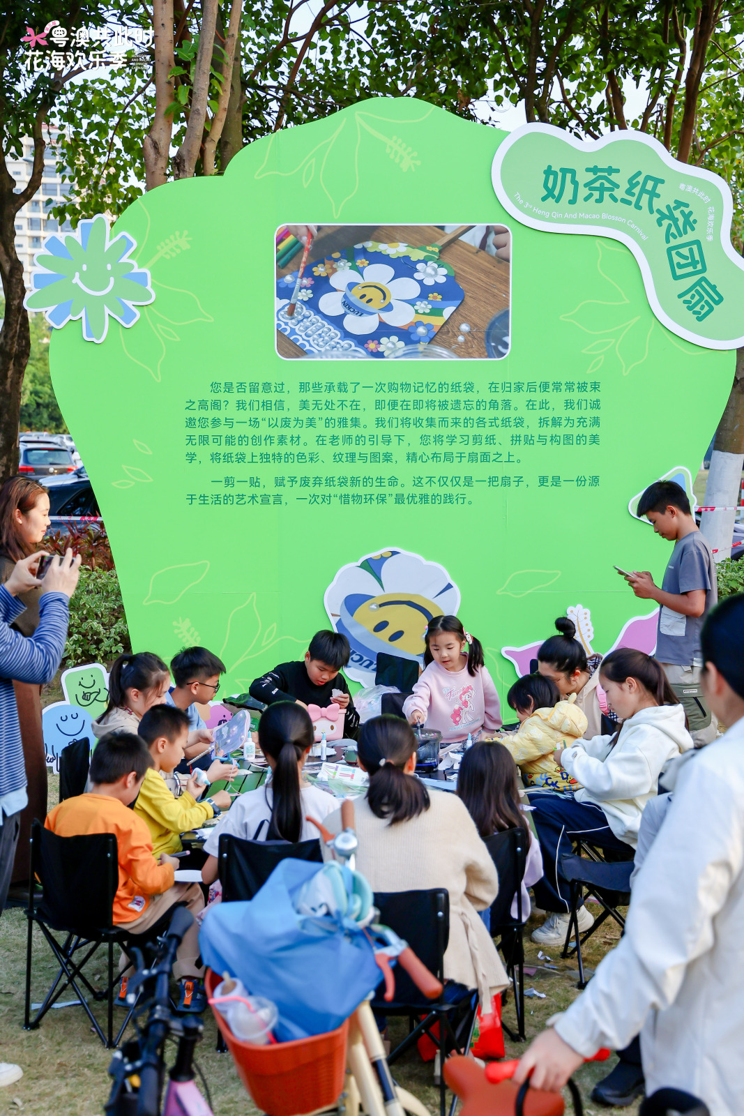 11月29日,由横琴粤澳深度合作区民生事务局主办的第三届“粤澳共此时”花海欢乐季迎来第三周主题活动。本周活动于花海长廊1号驿站举行。围绕绿色低碳、旧物再造、可持续消费等内容展开,并融入多元互动、社区文化与寻宝游乐等元素,以更贴近生活的方式倡导环保传递绿色理念营造绿色、共享、互动的欢乐氛围。