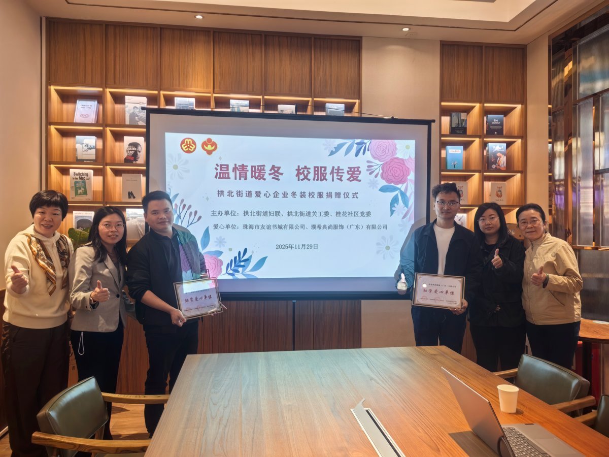 冬日寒意渐浓,公益暖流涌动。11月29日上午,“温情暖冬,校服传爱”爱心企业冬装校服捐赠仪式在拱北街道举行。活动由拱北街道妇联、关工委及桂花社区共同主办,富华里覔书店、璞希典尚服饰(广东)有限公司作为爱心企业提供支持。通过为辖区10名困难家庭学生送上崭新冬装校服,以实际行动传递社会关爱,让孩子们在寒冷冬日感受到暖心暖意。