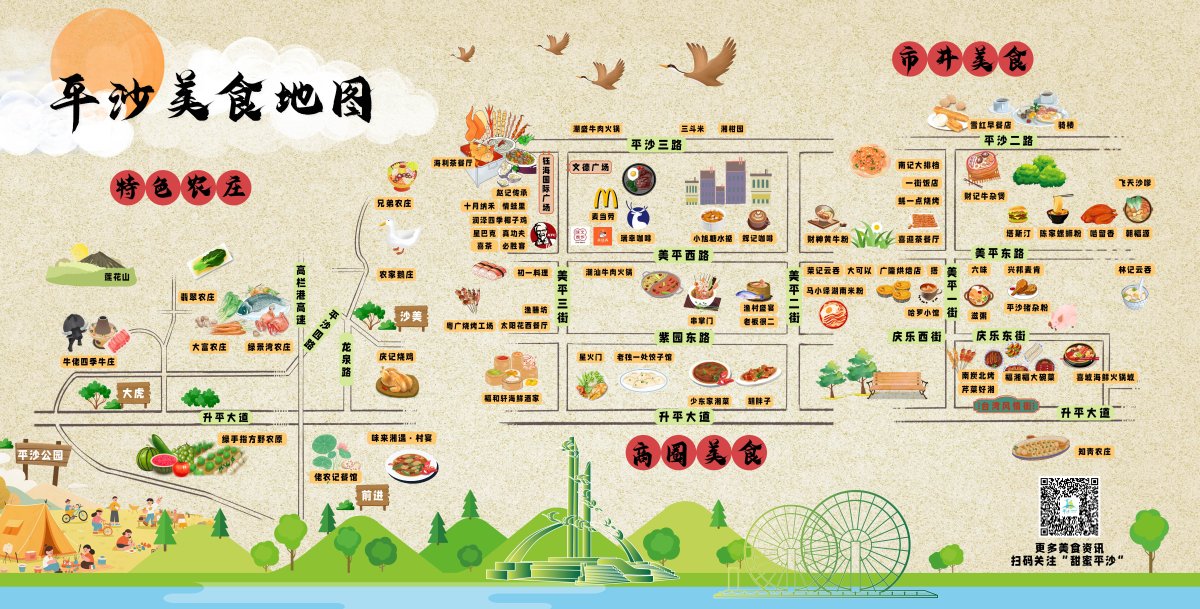 在平沙,除了泡温泉,还可以品尝特色美食。原生态特色农庄食材,从田间直达餐桌,原汁原味;汇聚各地特色菜的商圈美食,正宗地道的粤菜,爽辣下饭的湘菜;藏在居民楼下的市井美食,云吞、小面、糖水……各色各样的美食,让你吃得过瘾!