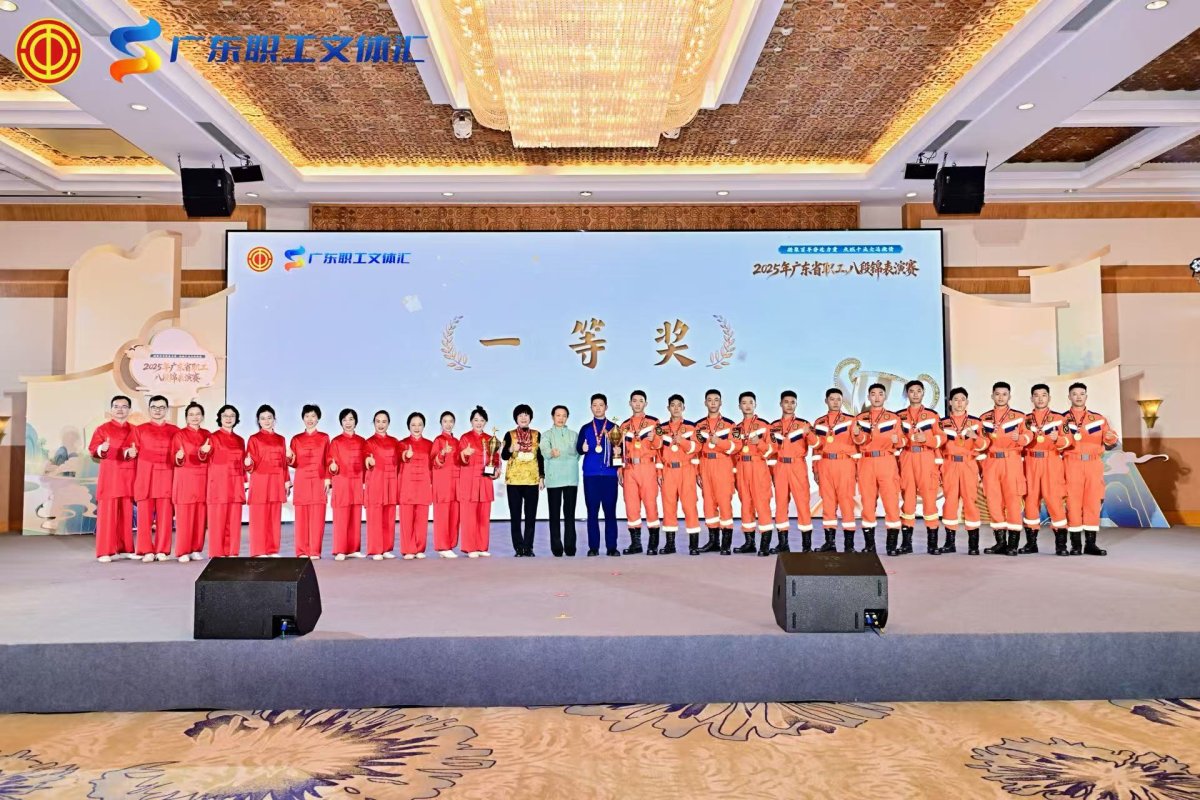 开幕式在气势恢宏的国家级非物质文化遗产项目《英歌舞》、歌舞《红日》和《百舞惊鸿》中拉开序幕,刚柔并济的舞步、慷慨激昂的歌声点燃了全场激情。比赛现场,运动员着装统一、精神饱满,动作行云流水,完美诠释八段锦“柔和缓慢、圆活连贯、松紧结合、动静相兼”的特点,并在规定动作的基础上融入太极、舞蹈等创新编排,生动展现了新时代劳动者昂扬向上、奋发有为的精神风貌。