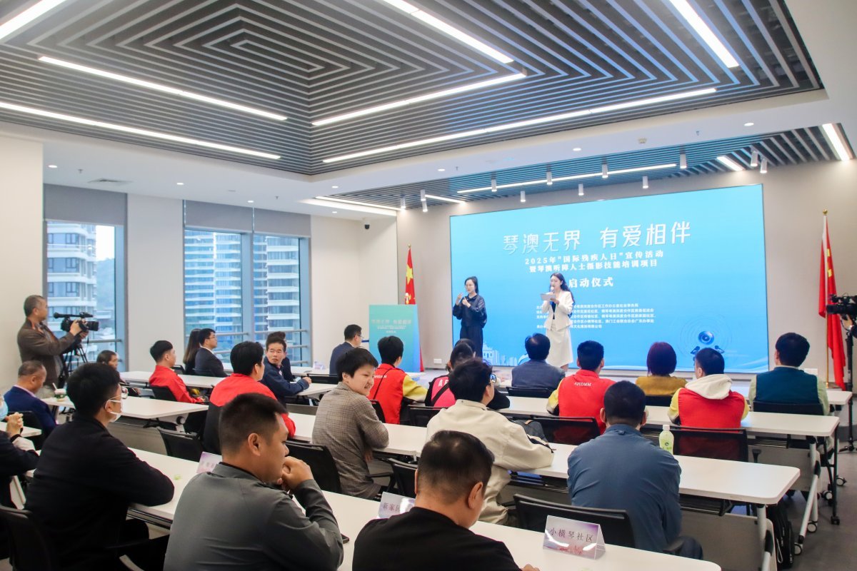 12月3日,横琴粤澳深度合作区举办第三十四个“国际残疾人日”主题宣传活动暨琴澳听障人士摄影技能培训项目启动仪式。活动以“琴澳无界,有爱相伴”为主题,旨在推动残疾人社会融合,提升其自我发展能力,通过一场特别的“无声”体验与视觉艺术培训,营造全社会关心关爱残疾人的良好氛围,为琴澳两地残疾人事业发展注入新的活力。