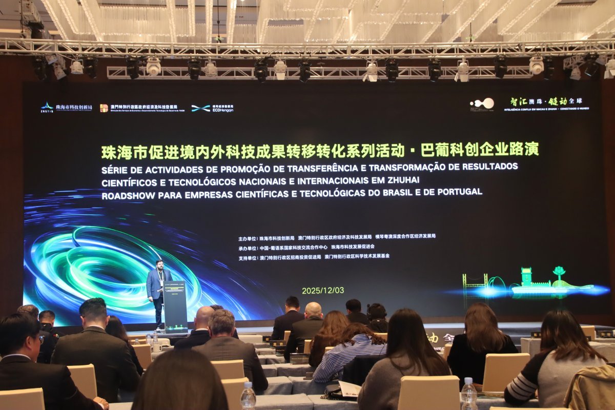 12月3日,珠海市促进境内外科技成果转移转化系列活动·巴葡科创企业路演在珠海举办。活动聚焦国际合作深化与科技成果转化,吸引来自葡萄牙、巴西等9个优质科创项目进行展示,现场举行多项产学研签约,为链接中葡创新资源、促进全球科研成果落地转化搭建桥梁,为推进粤港澳大湾区国际科创中心建设注入动能。广东省科学技术厅副厅长杨军、珠海市人民政府副市长黄振球出席活动并致辞。