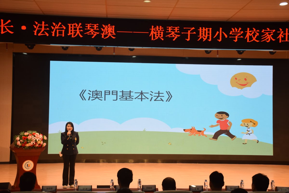 迎接“12·4”国家宪法日,12月3日下午,澳门法律工作者联合会主办“澳门青年法律工作者进校园”计划首次走进横琴粤澳深度合作区,来到首都师范大学子期实验小学。澳门法联会青年部部长黄景禧、委员许冰、监事张宏哲分别以宪法、基本法、国安法为主题,为全校师生带来一场生动活泼的法治宣讲,助力合作区青少年筑牢国家认同与法治观念。