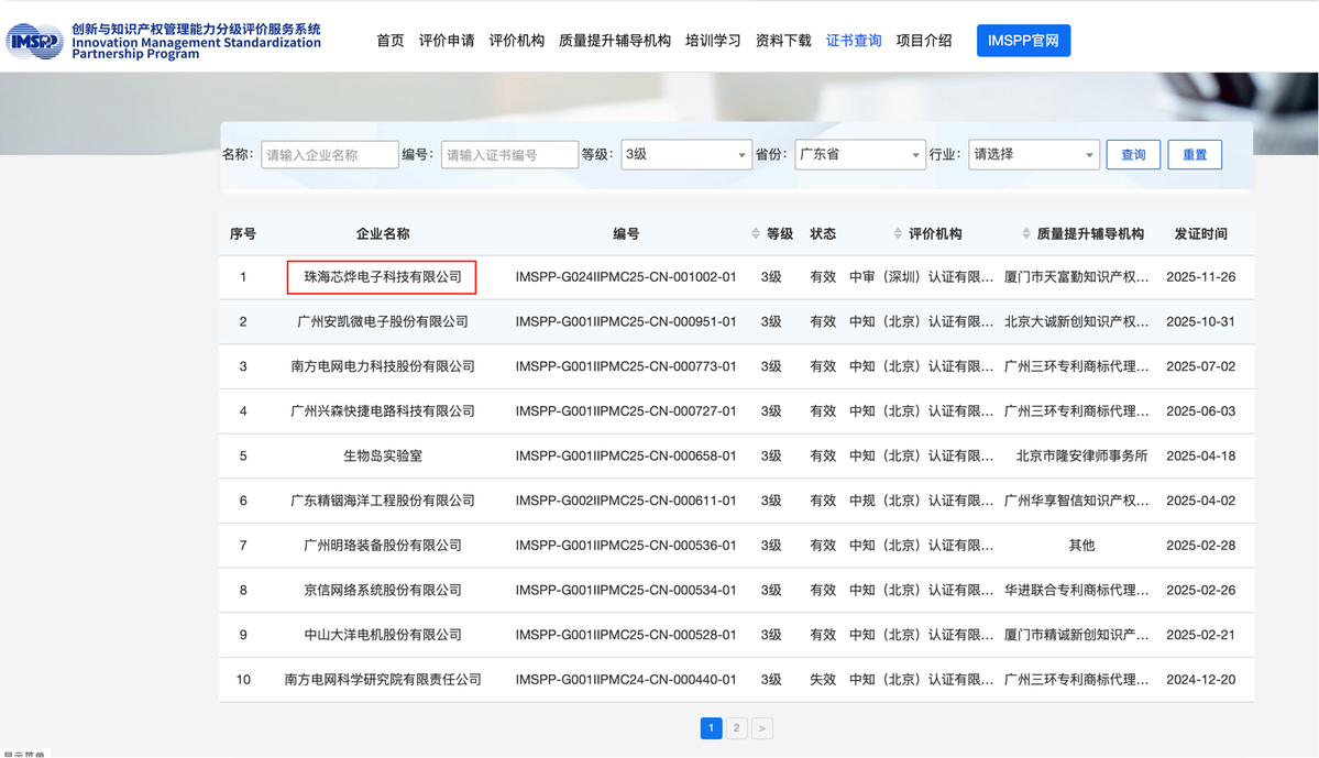 近日,珠海芯烨电子科技有限公司正式通过ISO56005《创新与知识产权管理能力》体系三级认证,成为珠海市首家获此国际认证三级要求的企业,标志着其在创新管理与知识产权体系建设领域迈入国际化先进行列。