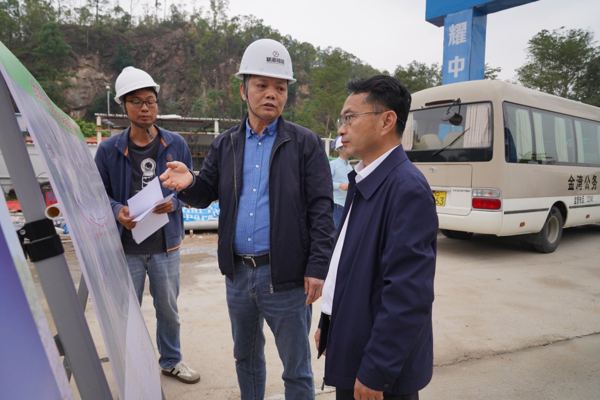 随后,调研组前往金河东路与金湾路交叉口。此处正在新建一座人行天桥,旨在缓解金湾区规划展览馆周边的交通拥堵,保障行人过街安全。该天桥设计为折线形,桥长96米,宽4.7米,目前基础施工已展开,预计于2025年12月底基本完工,届时将显著提升该路段的通行安全与效率。