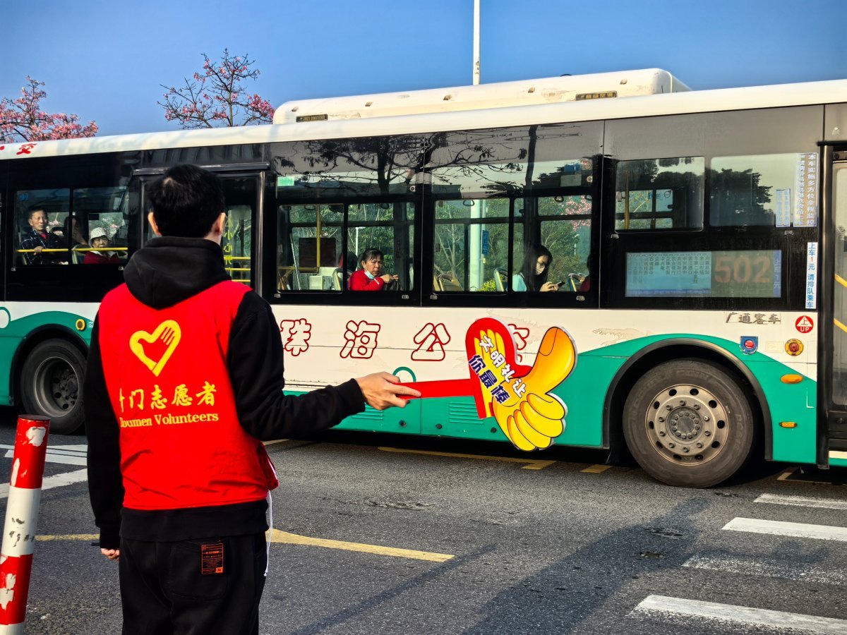 5日一大早,在斗门区井岸镇的一些重点交通路口,由斗门区青年志愿者协会联合青年街舞社团组成的志愿者,开展文明出行劝导服务。他们身穿红马甲,协助交警维护交通安全秩序,劝阻不文明行为,普及交通安全知识,助力营造安全、有序、文明的城市交通安全环境。