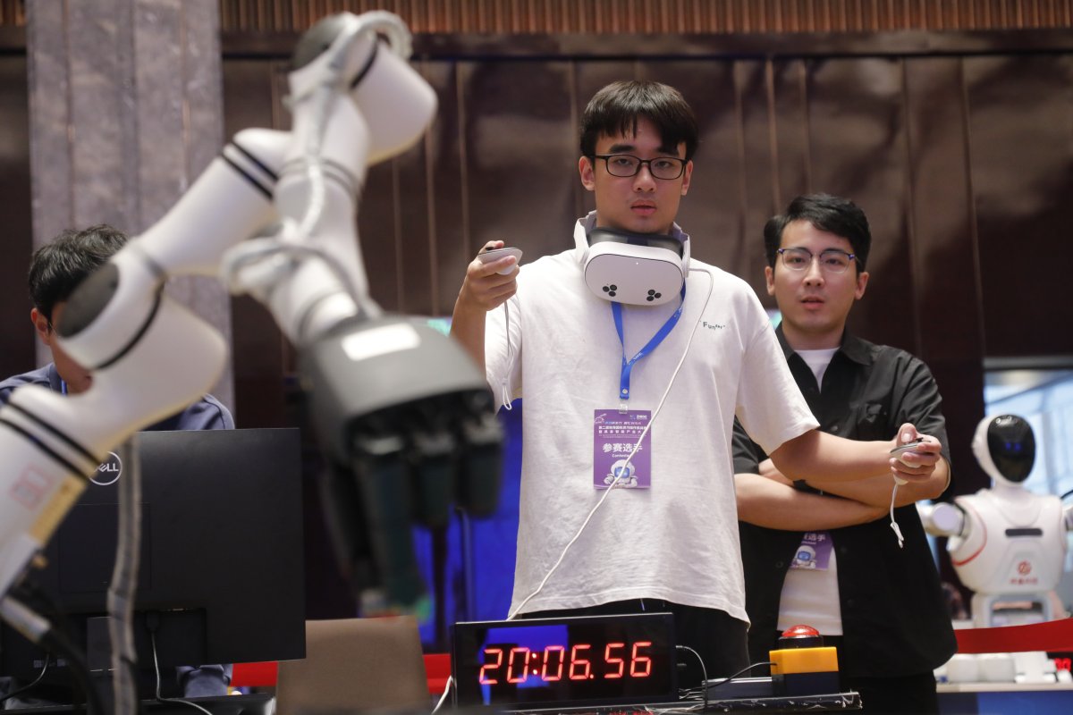 在具身智能应用创新中心内,机器人精准完成咖啡调制、安防预警、工业样品传递等多场景作业,覆盖工业、康养、零售等领域的技术演示,直观呈现具身智能从实验室走向产业化的落地潜能;人工智能创新中心集聚人工智能产业链主体,构建从芯片、大模型研发到智能应用的全产业链,打造“政产学研用”协同创新标杆。