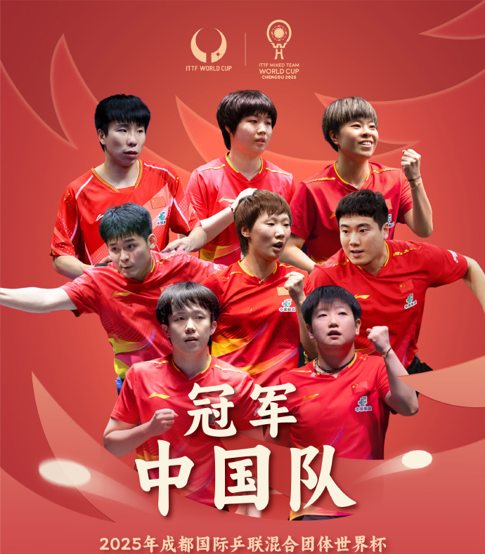 12月7日,2025年国际乒联混合团体世界杯决赛,中国队8比1战胜日本队,夺得冠军。