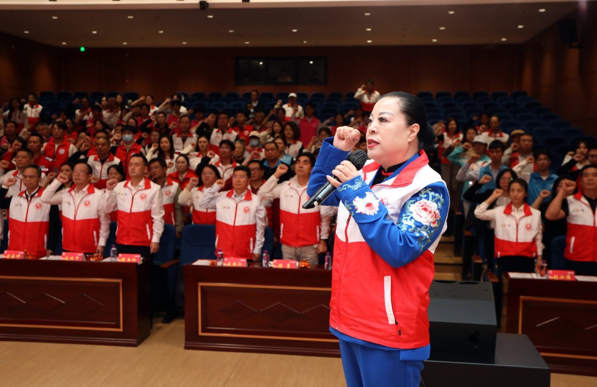 活动现场,在全国最美志愿者陈伟光的领誓下,全体志愿者高举右拳,庄严宣誓。