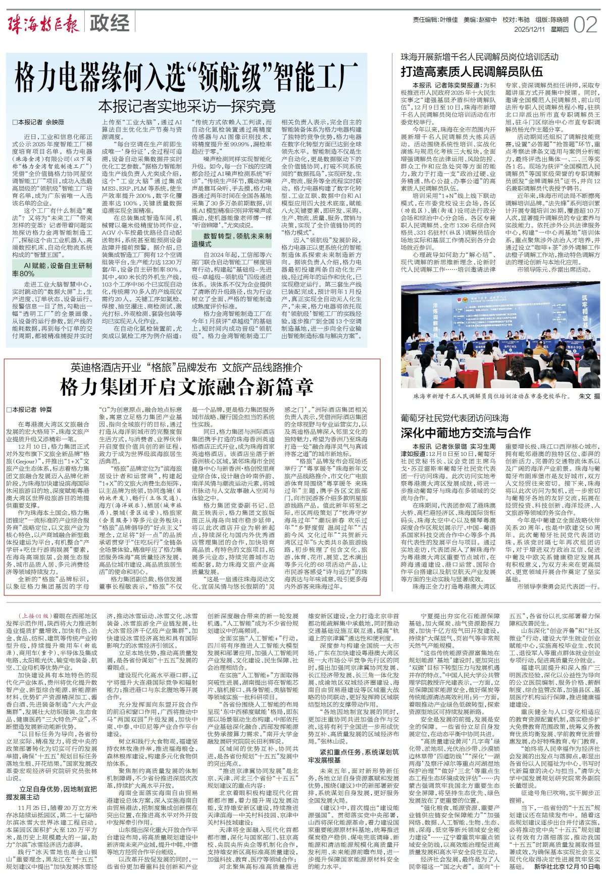 12月10日,格力集团正式对外发布旗下文旅全新品牌“格旅(Grejour)”,并推出“1+X”文旅产业生态体系,标志着格力集团文旅融合发展迈入品牌化新阶段,为珠海加快建设滨海国际休闲旅游目的地、深度赋能粤港澳大湾区世界级旅游目的地提供重要支撑。