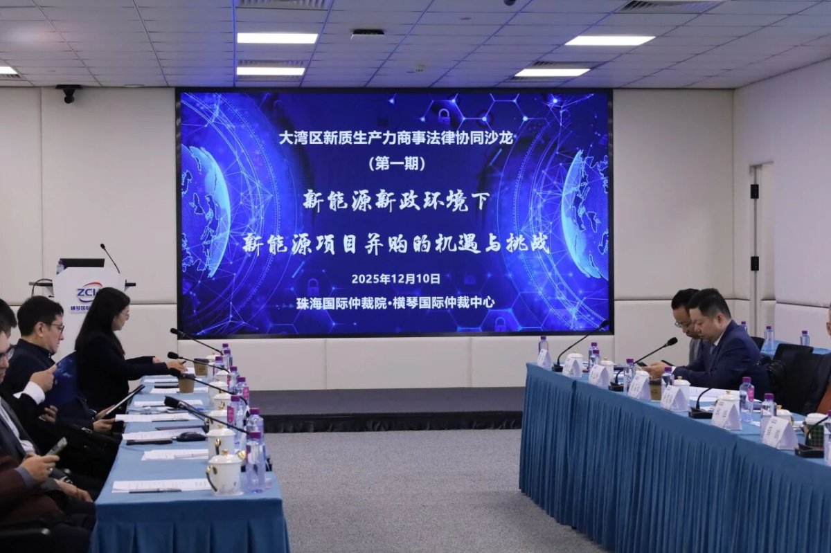 12月10日,由珠海国际仲裁院(横琴国际仲裁中心)(以下简称“珠国仲”)主办的“大湾区新质生产力商事法律协同沙龙(第一期)——新能源新政环境下新能源项目并购的机遇与挑战”在横琴粤澳深度合作区举行。活动精准聚焦“新质生产力”战略背景下新能源产业的制度需求、交易结构与争议类型,来自龙头企业、产业投资机构、专业律所及仲裁机构的嘉宾齐聚一堂,共同探讨在政策重塑与产业跃迁阶段如何以高水平法治服务支撑新兴产业高质量发展。