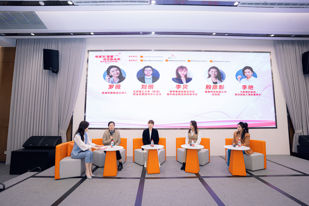 圆桌对话作为活动核心环节,邀请北京理工大学(珠海)职业发展指导中心主任刘丽、合作区青年创业就业协会秘书长李贝、卡斯国际集团联合创始人兼副董事长李艳、夏鼎科技有限公司总经理殷彦影等嘉宾,围绕“琴澳女性青年创新创业”主题,就“教育与政策如何为女性创业破局”“跨境与本土发展的路径选择”等关键议题进行了深入研讨。