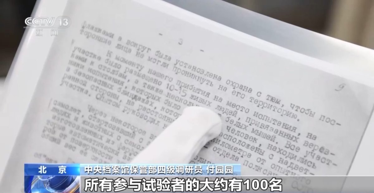 中央档案馆保管部四级调研员 付园园:731部队军医少将川岛清说,“我们到达试验地前,在那块地上就已经布置了10到15个被绳子绑在柱子上的活人,以及数百只的白鼠,所有参与试验者的大约有100名。日军参与试验的人都是待在安全的掩体里面”。由空中抛下炸弹,细菌洒落到了这些被实验的人身上,日军就记录感染的一些数据。
