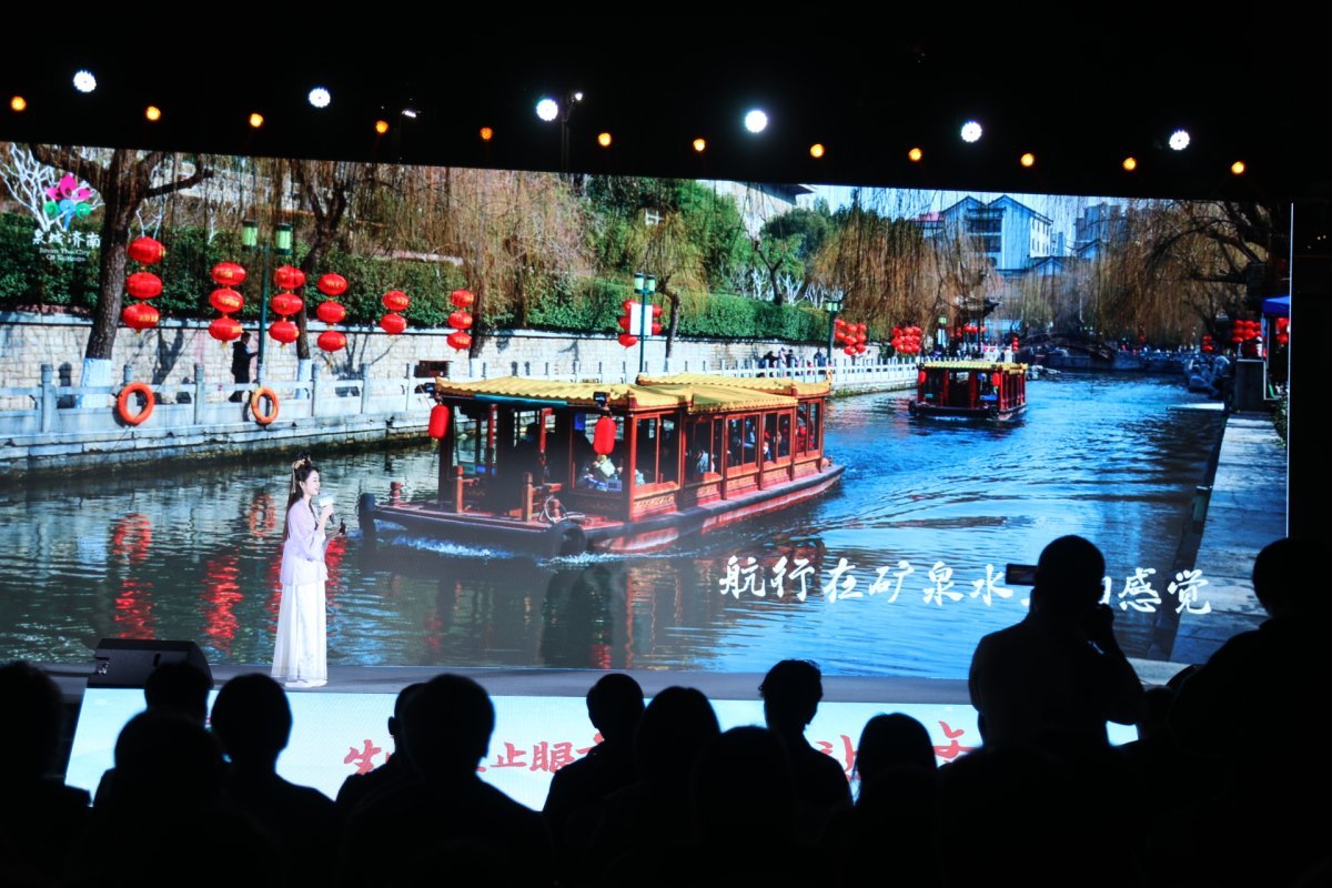 济南各区县文旅推荐官花式推介,现场“圈粉”无数。历下区推荐官扮演“夏雨荷”,结合《还珠格格》经典IP,推介大明湖、趵突泉、百花洲等景点;章丘区推荐官化身李清照,以《如梦令》诗词引出百脉泉、明水古城;商河县推荐官以“温泉仙子”形象,介绍地下1380米、58-62℃的养生温泉等。活动现场还设置了非遗文创市集,憨态可掬的彩塑鼓子秧歌文创、栩栩如生的李清照冰箱贴,还有南山文砚等非遗展品引人驻足。