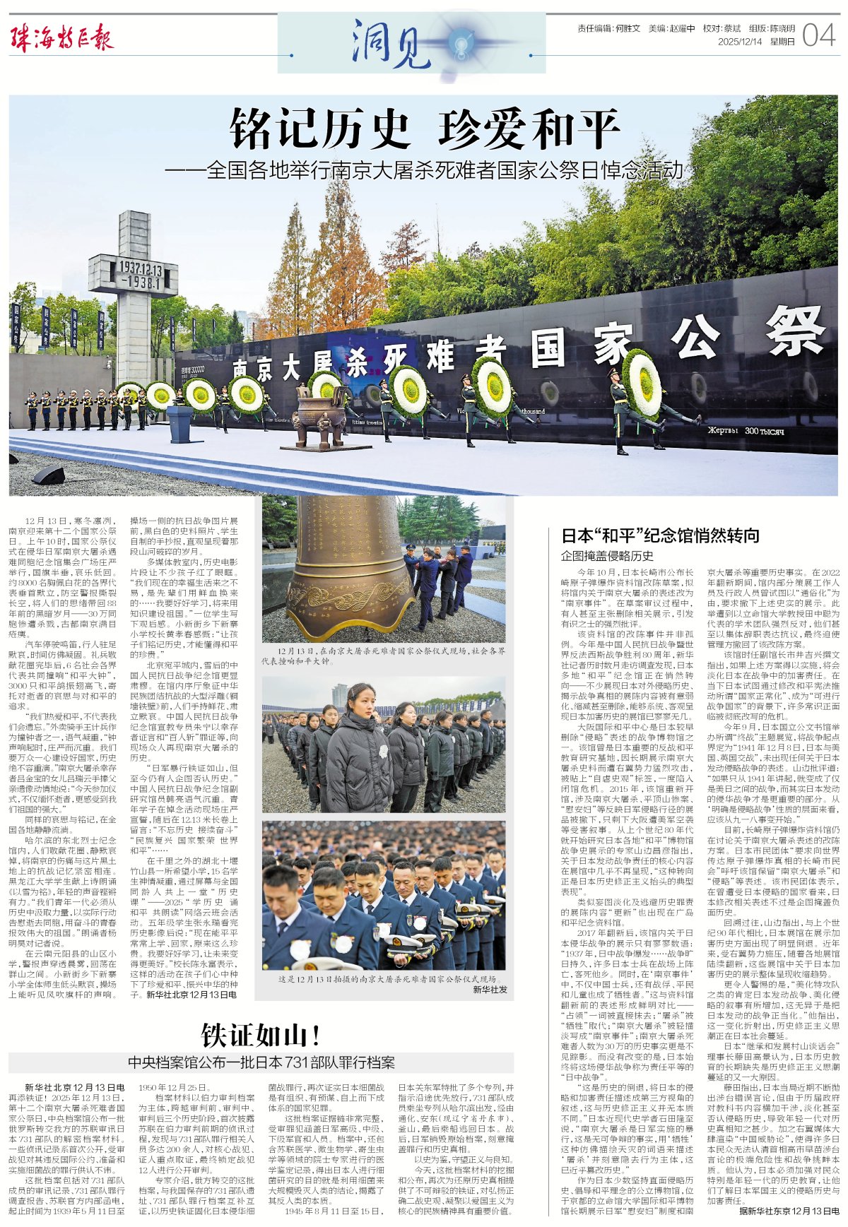 再添铁证!2025年12月13日,第十二个南京大屠杀死难者国家公祭日,中央档案馆公布一批俄罗斯转交我方的苏联审讯日本731部队的解密档案材料。一些侦讯记录系首次公开,受审战犯对其违反国际公约、准备和实施细菌战的罪行供认不讳。