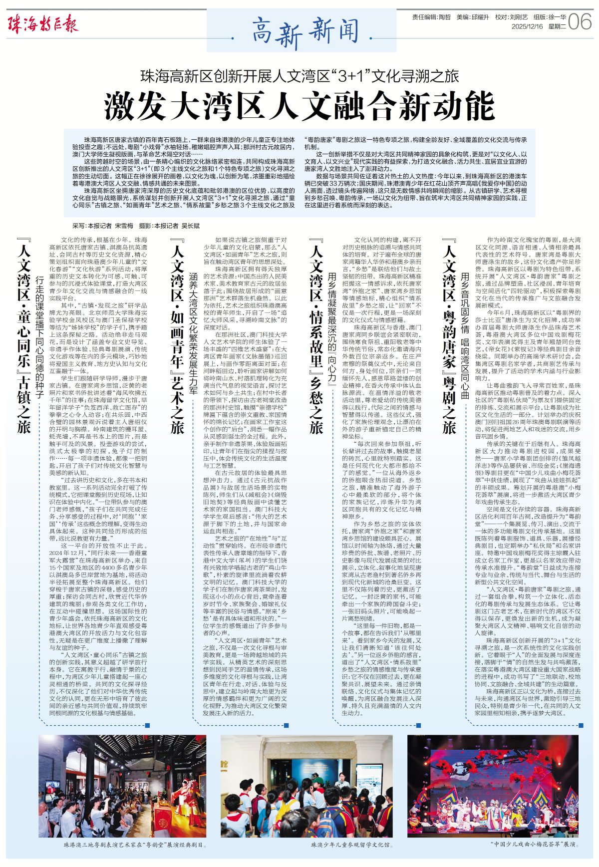 珠海高新区正以文化为桥,连接过去与未来,沟通湾区与世界,激励引导三地民众,特别是青少年一代,在共同的人文家园里相知相亲,携手逐梦大湾区。