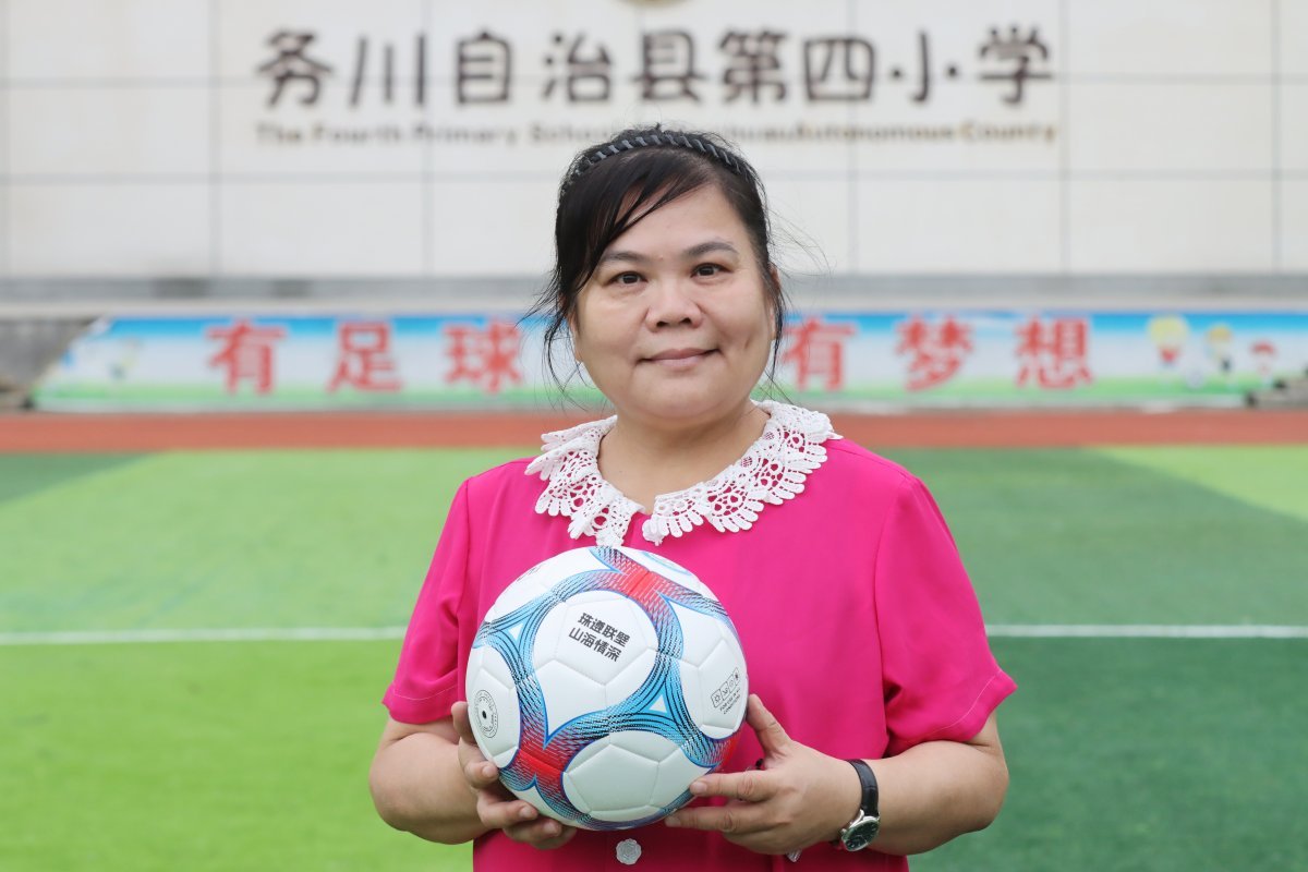 “传球!注意配合!”在遵义市务川第四小学的标准足球场上,记者见到了谢春平。训练休息间隙,孩子们来到谢春平身边,叽叽喳喳地分享着训练的趣事,她笑着倾听,不时轻拍孩子的肩膀给予鼓励。