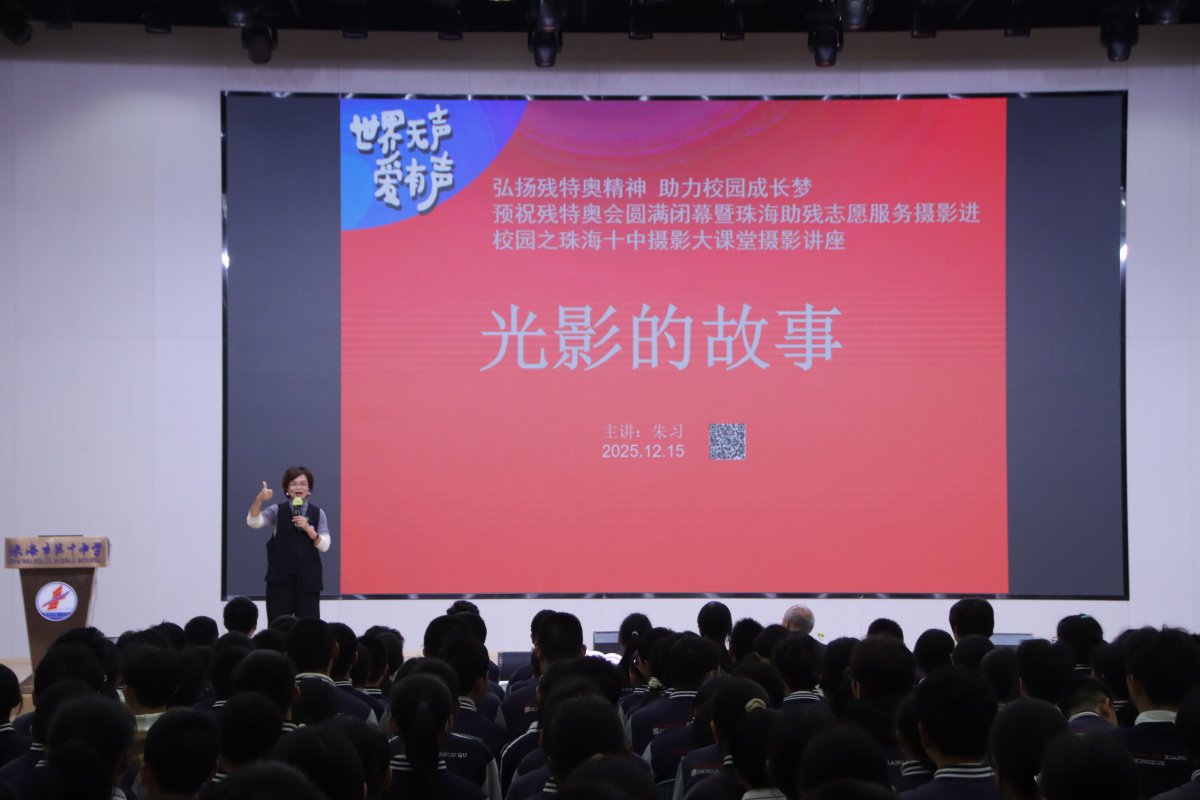 12月15日,是残特奥会圆满闭幕的日子。当日下午,“世界无声爱有声——弘扬残特奥精神助力校园成长梦·预祝残特奥会圆满闭幕暨珠海助残志愿服务摄影进校园”活动在珠海市第十中学举办。