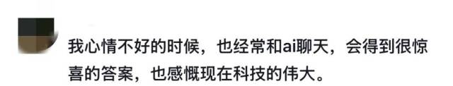 “最开始选择向AI求助的人,大部分其现实生活中的人际关系等都或多或少出现了一些问题,这意味着,其本身的支持系统已经不是很好了,这个时候AI便成为获取情绪价值的途径。”成都市第四人民医院心理治疗师宋明玮表示,AI给出的反馈“秒回”,而且一般都是肯定的、正向的,这会让大脑产生“爽”感,这成为很多人愿意甚至沉迷于和AI聊天的原因。