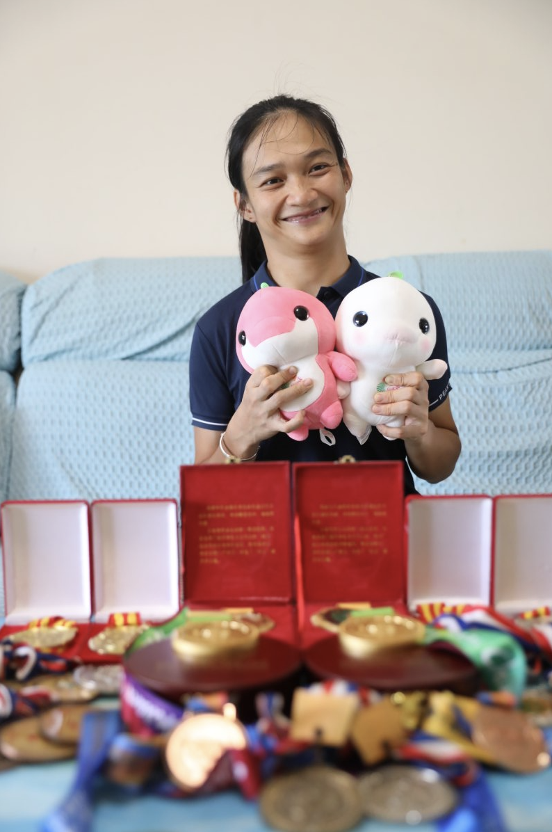 汗水浇灌出荣耀的花朵。2014年,年仅17岁的她首次夺得全国残疾人运动会冠军,成为珠海市残疾人运动队中最年轻的冠军。