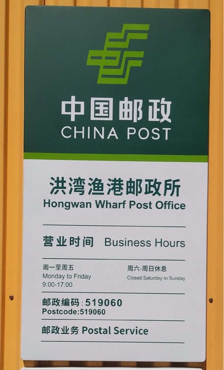 洪湾渔港邮政所,位于珠海市香洲区南屏渔港路61号4栋S10,是我市首个开办在渔港内的邮政服务网点;2022年启用,已运行三年多时间。在此期间,港内渔民用户及各工作单位就近用邮,彻底打通了我市中心渔港便民邮路的“最后一百米”。