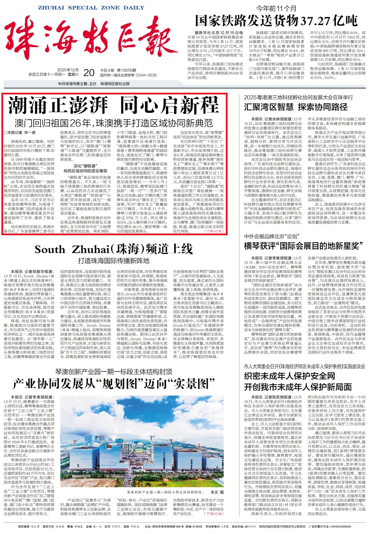 时序更替,华章日新。站上新起点,珠海正抓牢“澳门+横琴”新定位,在“硬联通”上推动更多重大项目落地,在“软联通”上推出更多体制机制融合成果,在“心联通”上持续拓展深度与特色,全力推动合作区第二阶段建设迈向新高度。