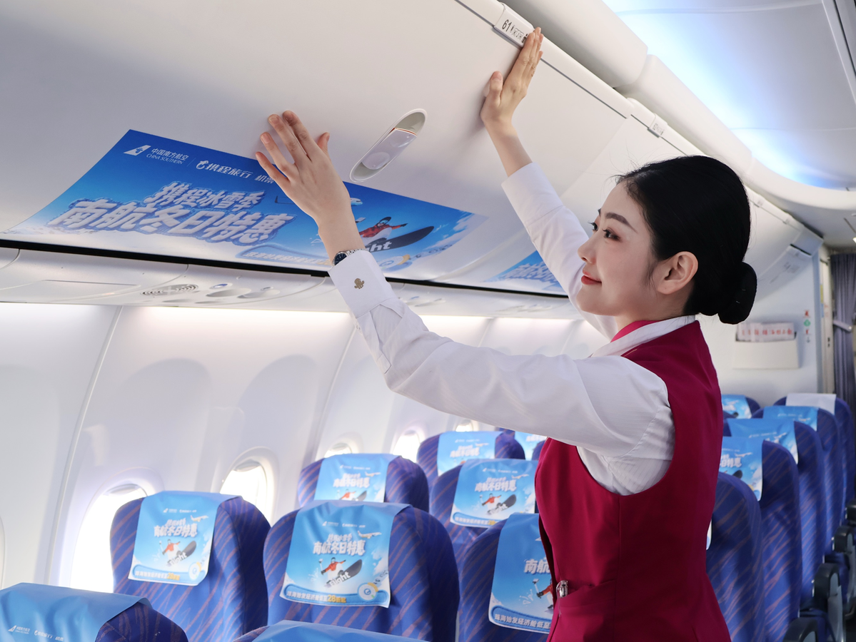 12月20日,南航珠海公司打造的冰雪季主题航班从珠海金湾机场起飞,满载旅客飞往哈尔滨,其中近半数为澳门籍旅客,机组策划了冰雪知识竞猜、东北民俗小课堂等互动活动,让航行旅程温情满满。