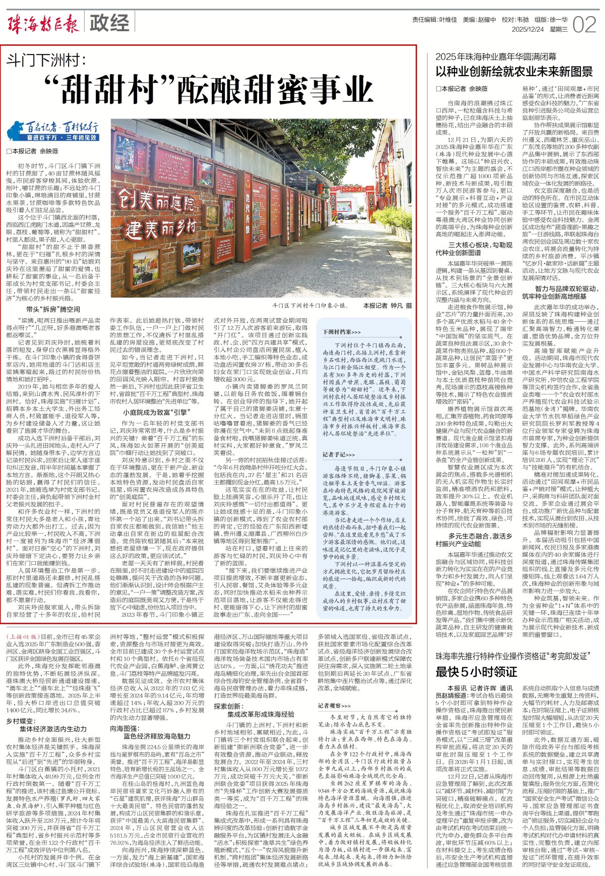 这笔实实在在的收益,让村民脸上挂满笑容、心里乐开了花,也让刘庆玲感慨“一切付出都值得”。更让她成就感十足的是,斗门印象小镇的创新模式,得到了农业农村部的肯定,它的经验在广东阳西新墟镇、贵州遵义湄潭县、广西柳州白沙镇等地区得到复制推广。