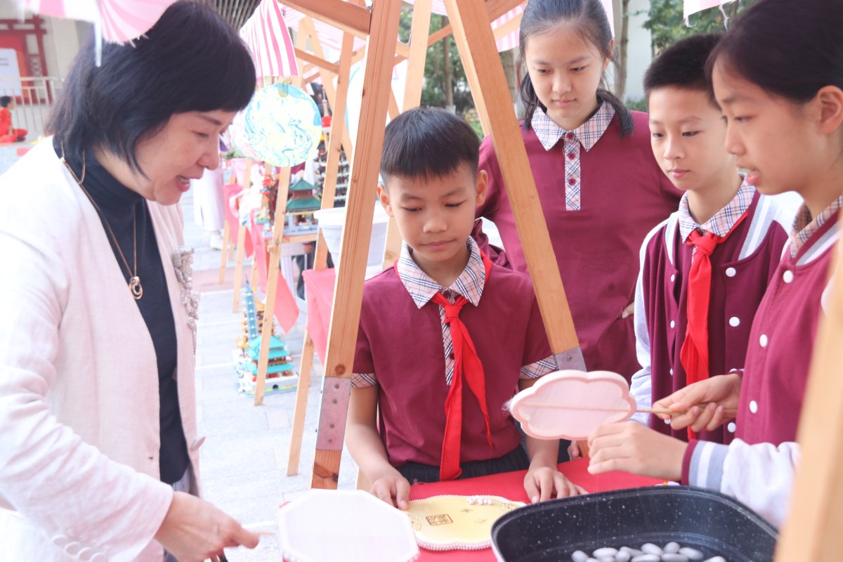 课堂展示环节亮点纷呈。张洁玲老师执教《湾区无人机智造联世界》,引导学生通过动手实践感受科技与劳动的融合;杨兰老师呈现《蓝天绘梦湾区印象》,灵活运用学校独创的“四C”教学模式——拆解、猜想、操作、创造,让学生在艺术劳动中发挥主体作用,提升综合素养。