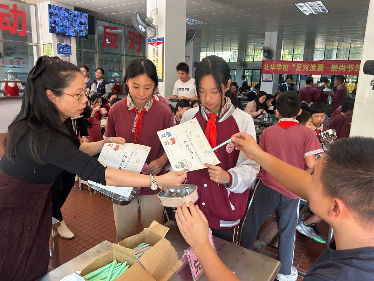 据了解,壮华学校高度重视“反对浪费崇尚节约”工作,坚持以党建为引领,将勤俭节约教育融入立德树人实践。在全校师生2600余人共同践行下,今年以来,校内剩饭剩菜量明显减少,食堂餐厨垃圾同比下降30%。