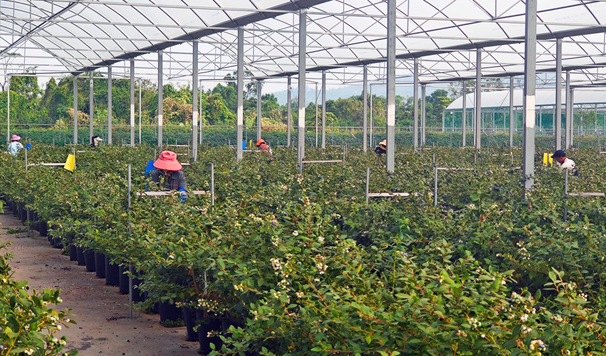 作为珠海市首个设施蓝莓种植基地,平沙镇蓝莓基地自去年首次挂果上市以来,就凭借优良的品质收获了市场的广泛好评,产品一度供不应求。基地负责人黄智鹏站在大棚里,看着满园丰收的果实,难掩喜悦之情表示,去年是蓝莓基地投产的第一年,当时心里还没有底,但没想到产品一上市就被抢购一空。经过一年的摸索和技术改良,今年蓝莓基地的水肥管理、病虫害防治等方面都做了提升,蓝莓的品质和口感更加稳定,甜度也比去年提升了不少。