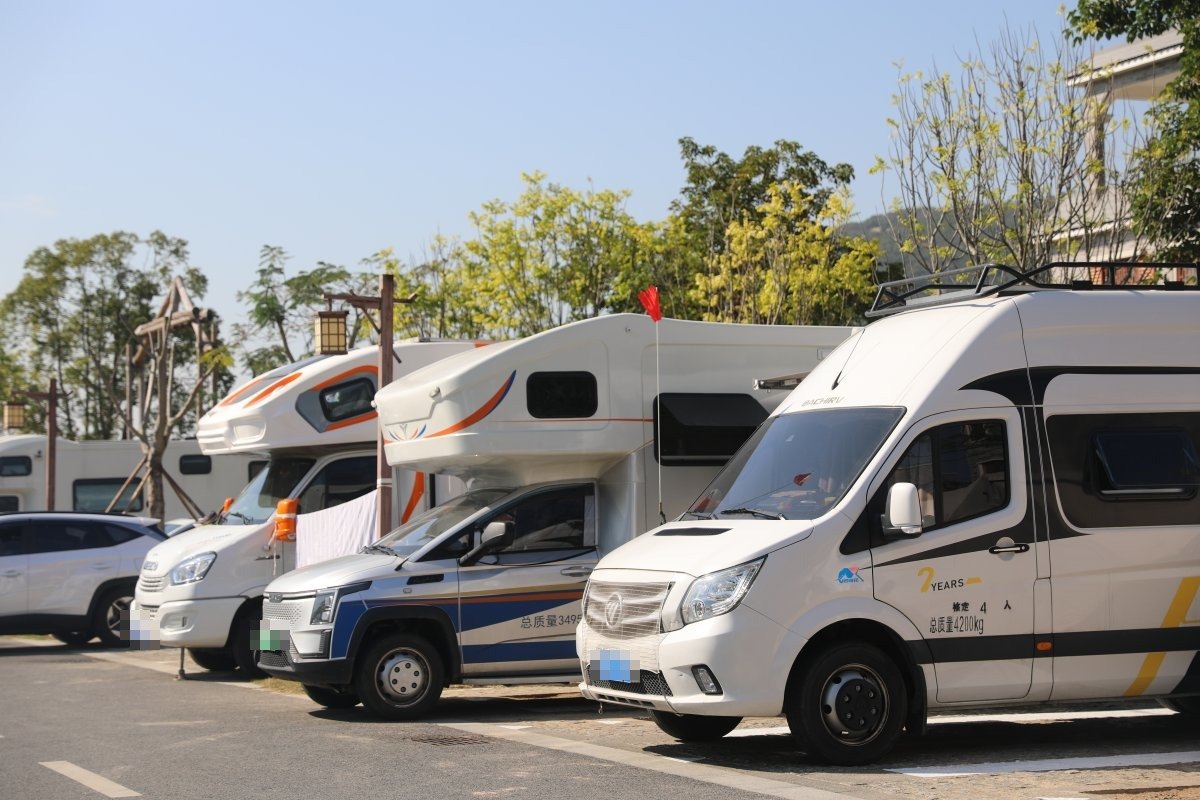 冬日的暖阳洒在珠海市金湾区三灶镇木头冲村,村口的三灶木头冲粤游驿站,俨然一个微型的“车轮上的社区”:京、鲁、鄂、晋、陕、吉……来自天南海北的房车停靠于此。