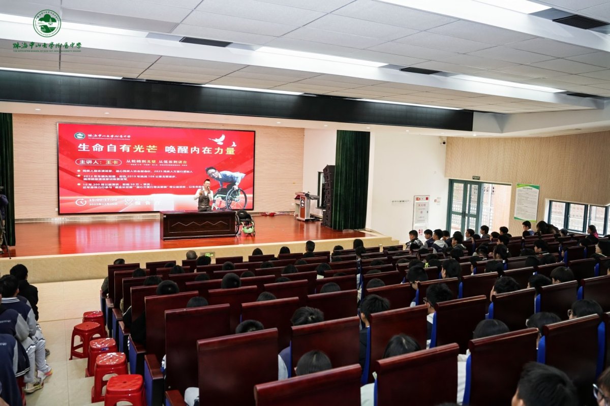 下午,报告厅内座无虚席。“超级演说家”全国亚军王卡老师以《生命自有光芒,唤醒内在力量》为题,展开一场真诚的生命对话。他将个人成长中的挫折与突破,转化为感人至深的叙事,将“坚毅”的学风内核诠释为可触可感的生命力量。