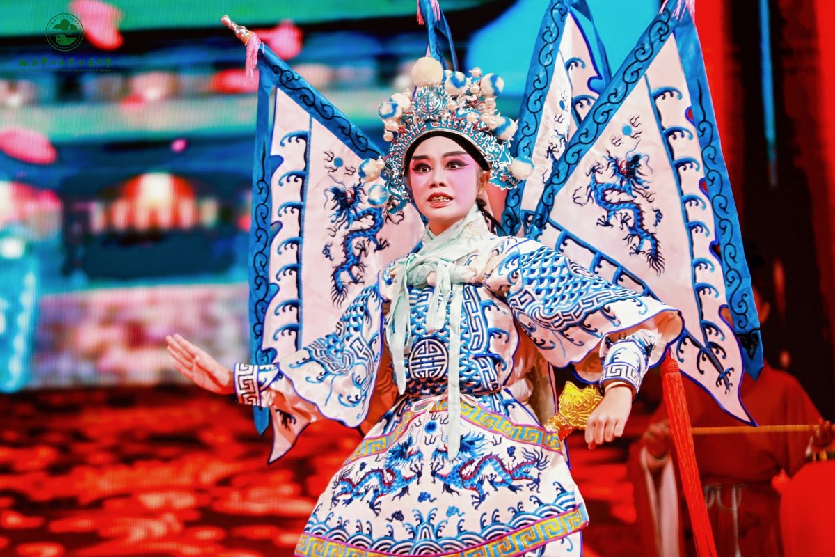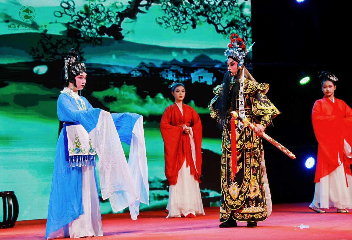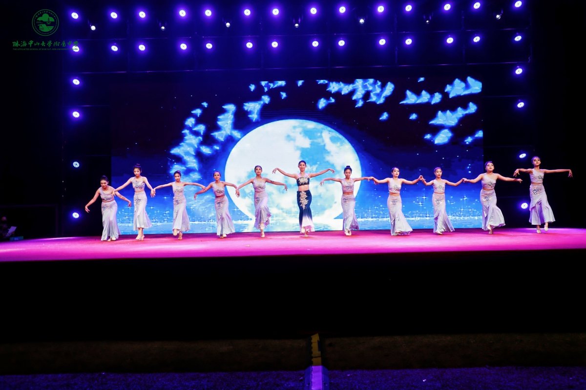 夜幕降临,运动场化作流光溢彩的青春舞台。“逐梦艺途·青春绽放”艺术节闭幕汇演华彩启幕:民族舞《石榴花开》舞出团结气象,《一梦江湖》刚柔并济诠释传统美学,环保时装秀《绿动校园》传递绿色理念,粤剧《木兰诗》唱响家国情怀。师生同台、全场共鸣,生动演绎校园中流淌的“四美”文化。