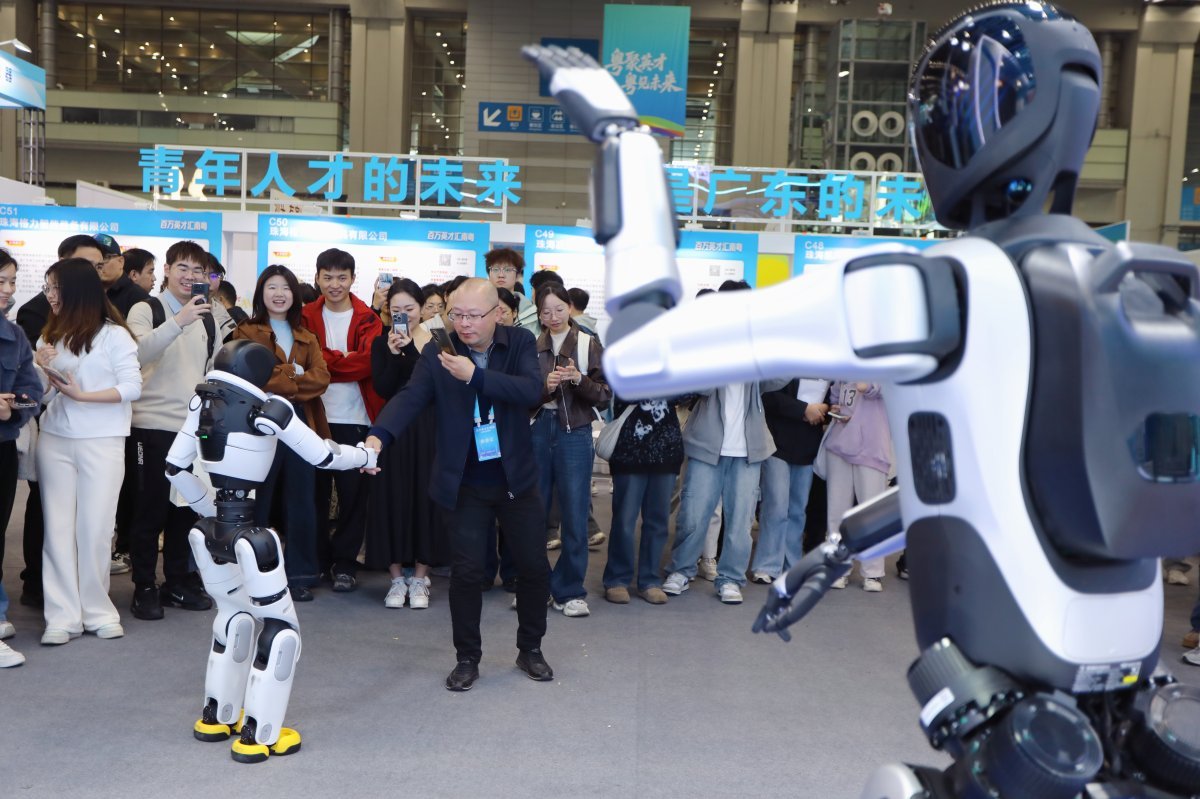 港澳及广东21市城市形象展区融合城市推介、名企直招与非遗文创,让求职者沉浸式感受湾区科技活力、产业潜力与文化魅力。珠海展区巧妙融入海洋元素,展现海滨城市风貌,并带来多项黑科技展示:国产首架大型水陆两栖飞机AG600模型悬于展区中央,彰显珠海打造“天空之城”的实力。一旁,远征系列与灵犀系列机器人现场表演舞蹈,与观众互动频频;全球首创的极致轻量型消费级AI+AR眼镜,以及SE40便携式多波束测量无人船、全球首艘跨介质运行无人艇“蓝鲸号”、V30长航时无人艇等前沿产品,集中呈现了珠海在人工智能、海洋科技等领域的领先成果,吸引众多招聘者驻足体验与打卡。