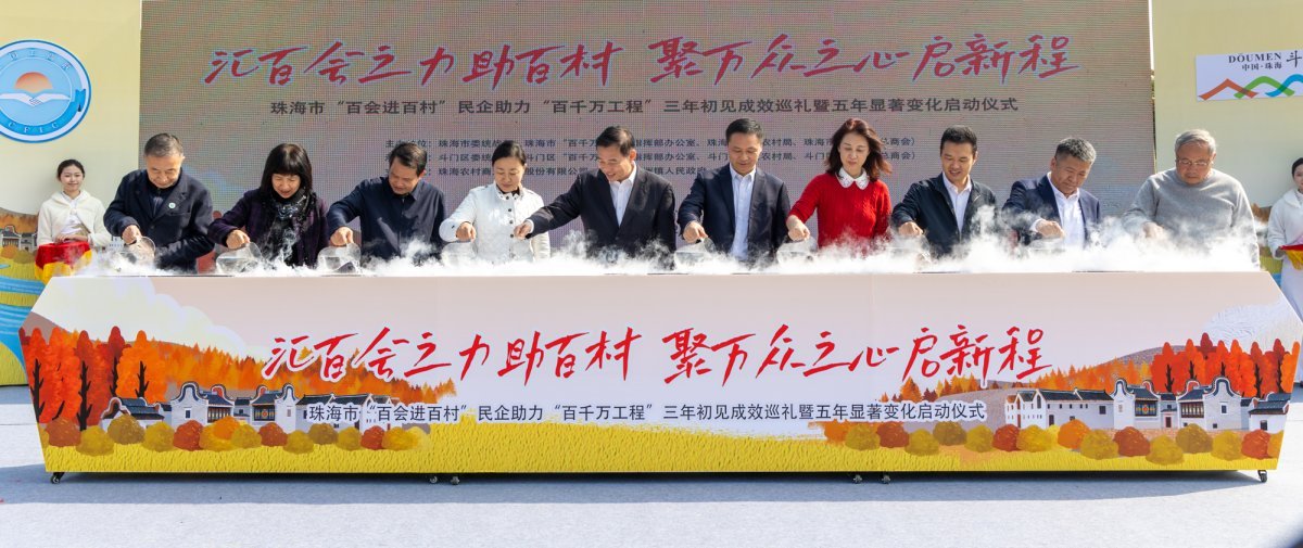 三年来,珠海市工商联创新推进“百会进百村”行动,实现全市122个商协会与122个行政村精准结对共建,累计引导社会力量投入超8亿元,落地160余个帮扶项目,成效显著:在产业兴村方面,带动企业投资超7.6亿元,激活强村富民新动能;在绿美润村方面,投入420余万元植树超12万棵,绘就生态宜居新画卷;在人居焕新方面,推动一批“小切口、大民生”工程落地,提升村民生活品质;在关爱暖心方面,慰问群众近3000人次,公共服务帮扶捐赠物资超5300万元,传递社会温情。