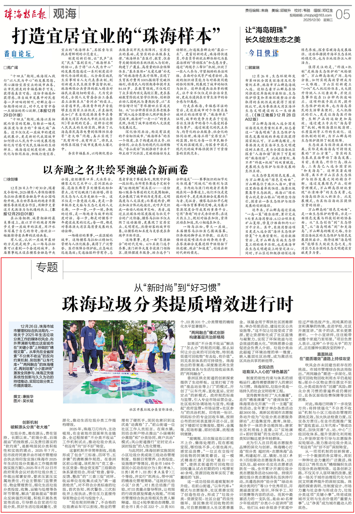 2025年,珠海刀刃向内、主动破局,在全省地市层面率先全链条、全过程探索“不分类不收运”工作机制试点,推动垃圾分类从“有没有”向“好不好”转变。