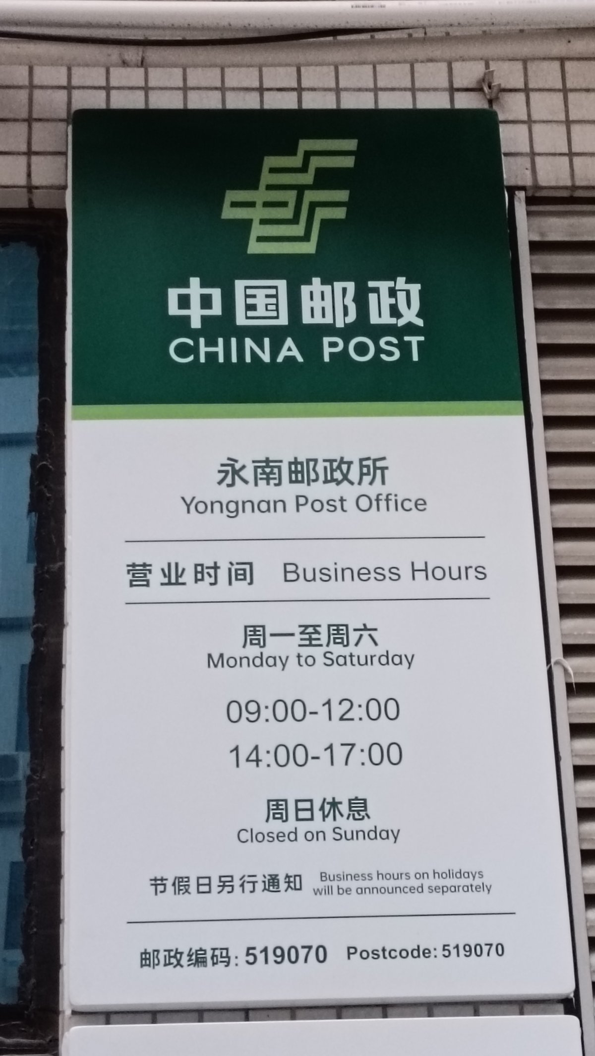 永南邮政所为正式的邮政服务网点,将提供全品类邮政普遍服务。