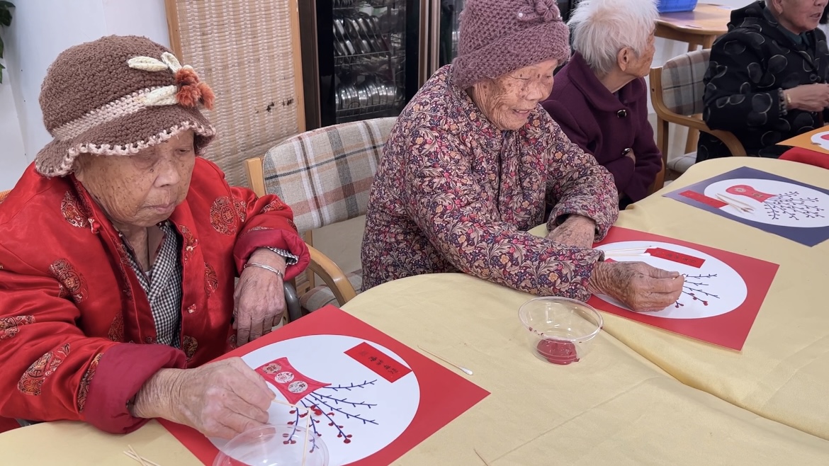 看似简单的手工作品,对于年迈的长者来说有一定难度,但大家兴致高涨,纷纷动手参与,不明白的地方就请教社工,现场氛围温馨而热烈。最终,一幅幅棉签发财果做好了,长者看着自己制作的作品,脸上洋溢着自豪与喜悦的笑容。