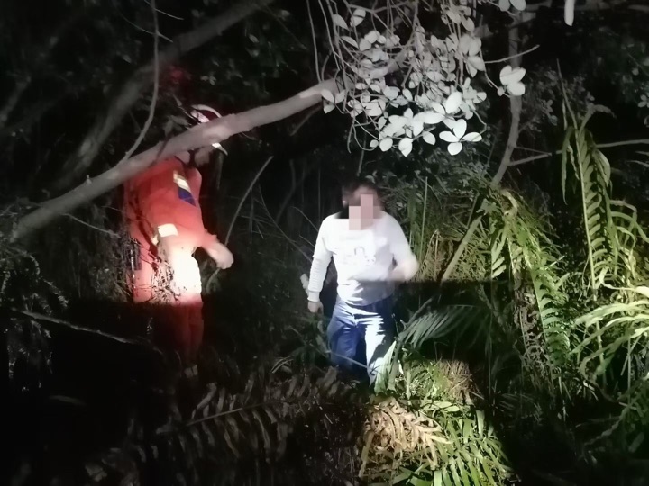 19时50分,应急巡山人员抵达现场后,救援队伍组织登山搜救。为精准锁定位置,救援人员一边利用哨声传递信号,一边持续与报警人保持通话,询问其是否能听到,通过双向联动逐步将搜救范围缩小。