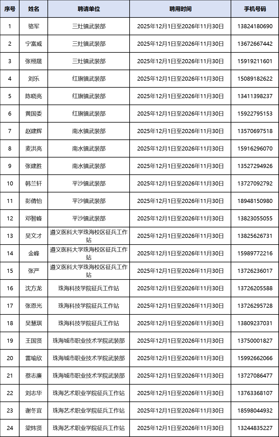 珠海市金湾区下级业务部门2026年廉洁征兵监督员名单