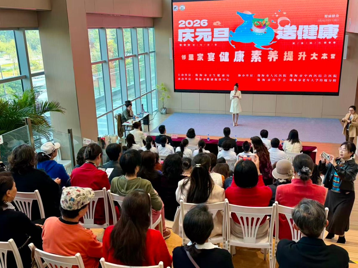 12月30日,由珠海市卫生健康局主办、珠海市健康促进中心承办的“庆元旦·送健康·邻里家宴健康素养提升大本营”——2025年“敬老月”卫生健康志愿服务专场活动在香山场大厦举行。本次活动面向珠海市老年大学传媒分校的学员及周边社区长者,通过健康科普讲座、家庭医生签约、健康咨询、中医药手工体验及邻里家宴等形式,普及健康知识,传递暖心关怀。