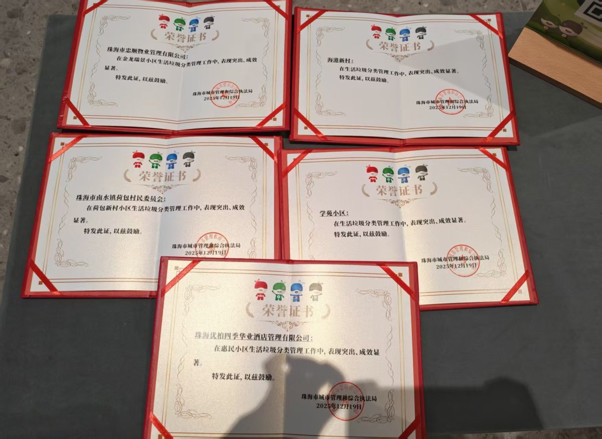 为系统总结2025年度珠海市生活垃圾分类工作成效,根据《珠海市2025年生活垃圾分类宣传工作方案》,日前,珠海市城市管理和综合执法局在珠海方志馆开展“携手五年分类兼程,感恩有您相伴同行”珠海市生活垃圾分类2025年度工作成效总结活动。其中南水镇内五所居民小区获得市级荣誉。