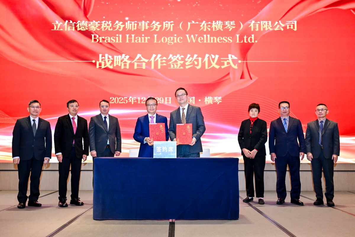 论坛现场,立信总部领导、澳门涉税专业代表、行业协会领导共同为立信德豪税务师事务所揭牌。在战略合作签约环节,立信德豪税务师事务所分别与Brasil Hair Logic Wellness Ltd.、广发银行横琴粤澳深度合作区分行、中葡经贸中心完成签约。立信德豪税务师事务所总经理刘小丹表示,一系列战略合作的达成,将实现资源互补、优势叠加,从税务咨询、金融服务、跨境经贸对接等多维度为出海企业赋能,构建全链条服务生态。