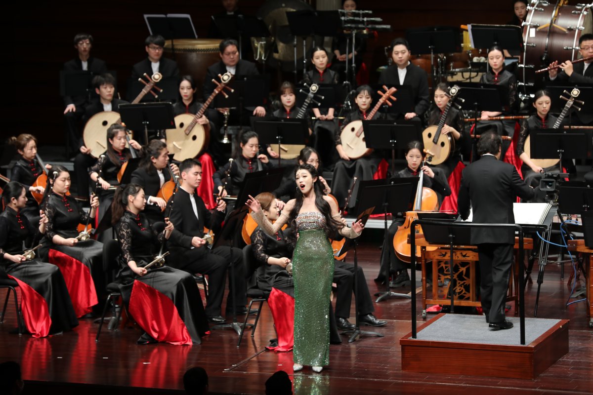 青年琵琶演奏家刘小菁演绎的《连理弦歌》,将琵琶的文武之道与现代作曲技法完美结合,刘星的中阮协奏曲《云南回忆·机械的快板》在中阮演奏家罗蕊艳的演绎下,以中阮醇厚而富有弹性的音色,充满现代的节奏律动,展现出青春的脉搏。著名京剧曲牌《夜深沉》,由著名胡琴演奏家姜克美与乐队联袂呈现,京胡的亮丽音色与管弦乐的丰富色彩交融,尽显大家风范,将音乐会推向了高潮。