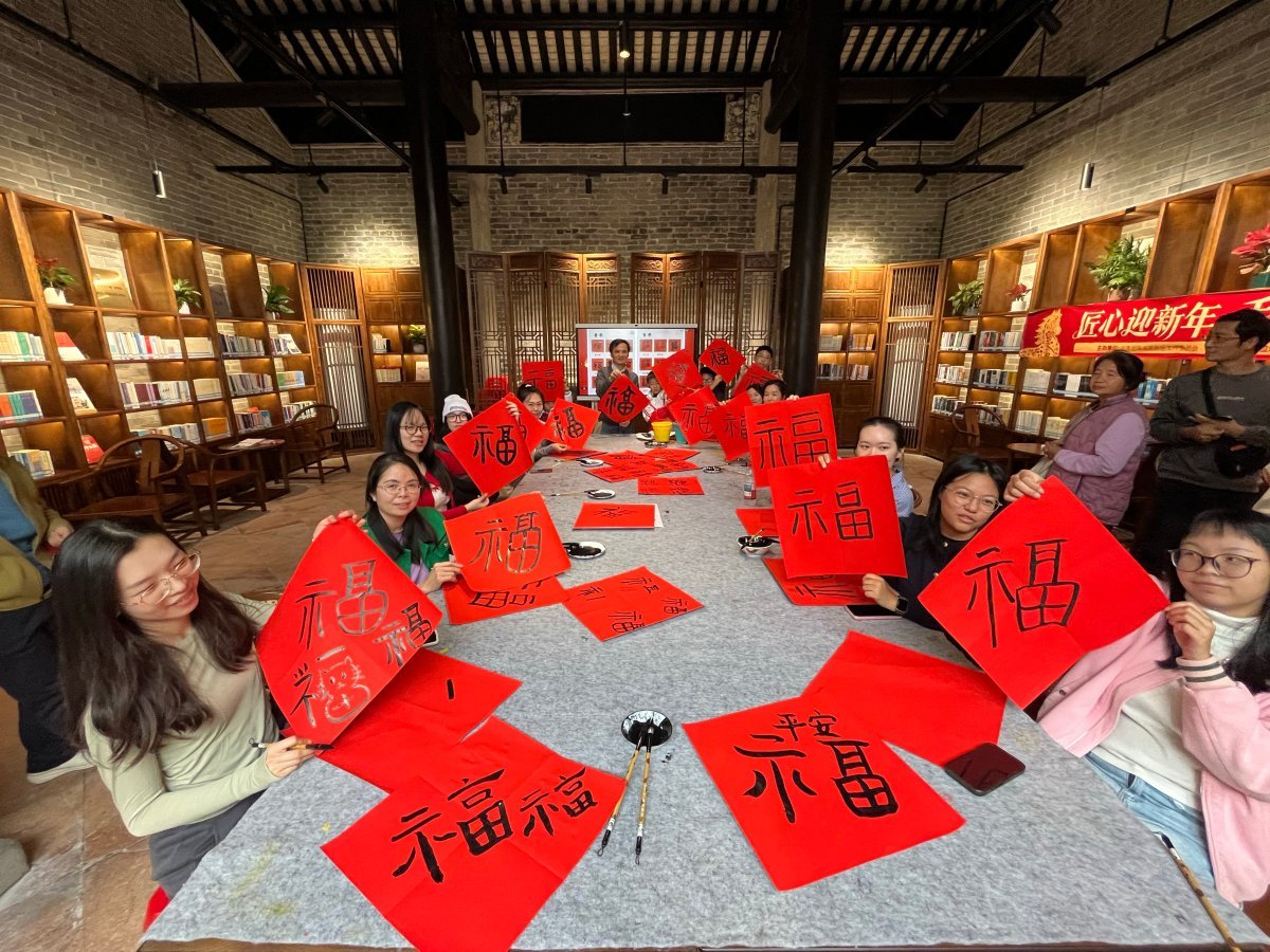 精彩的讲解与演示迅速点燃了现场氛围,吸引了众多市民与游客驻足参与。随后,活动进入写福字、送春联环节。艺术家与书法爱好者们铺纸研墨,应众之请,将美好的新春祝福凝于笔端。红纸翻飞,墨香四溢,欢声笑语中,传统年俗的温情与雅趣洋溢全场,将本次文化体验推向高潮。