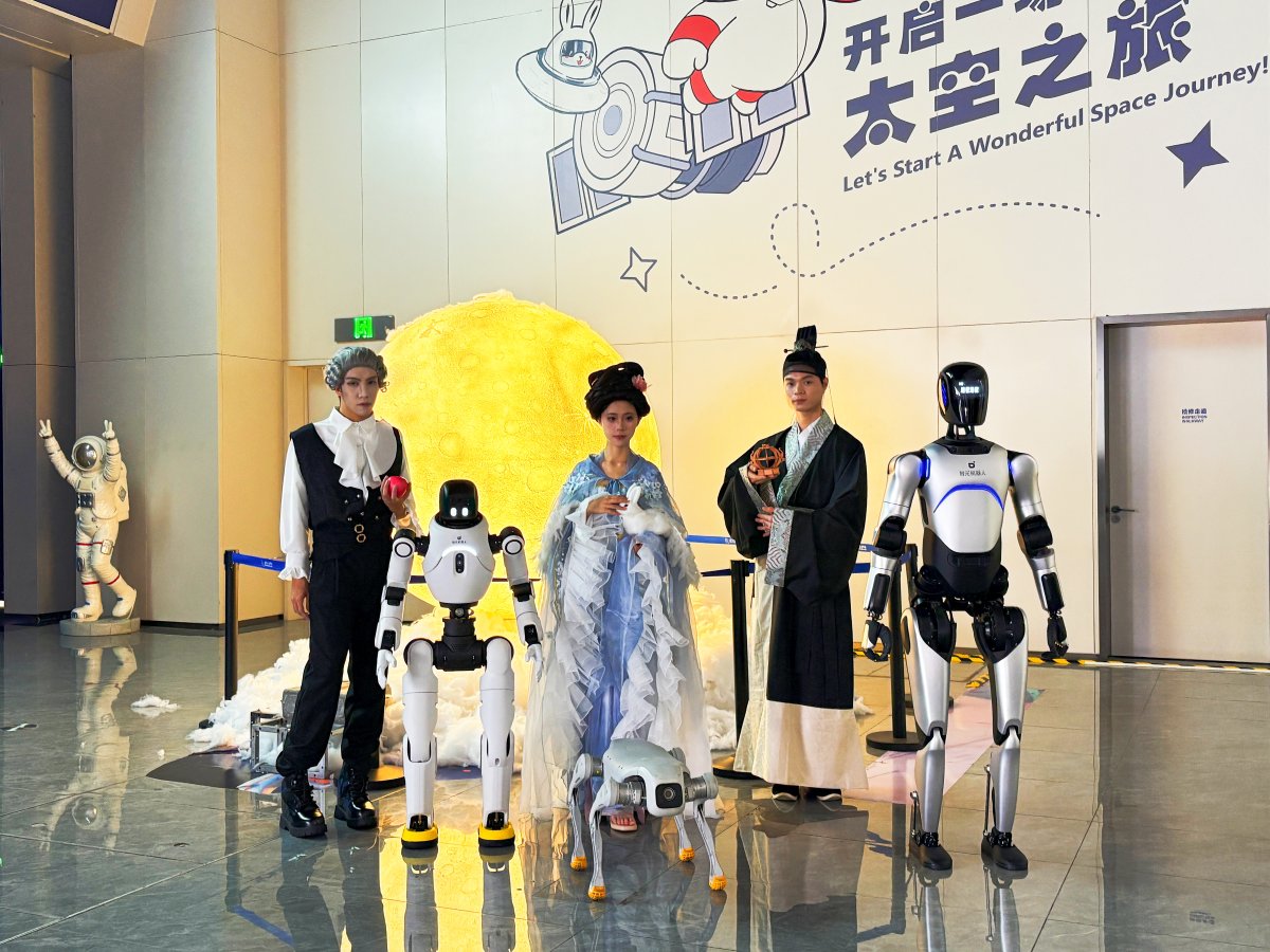 太空中心在元旦假期推出“时空对话·科学奇旅”活动,让前沿的智能科技与穿越时空的科学人物同台共创。活动现场,智元的人形机器人及机器狗领衔,与扮演牛顿、张衡、嫦娥、航天员的真人NPC(即“非玩家角色”,可理解为游戏场景中的演员)组成的“豪华科学天团”,成为游客瞩目焦点。由于机器人搭载了先进AI与环境感知系统,它们能灵敏感知游客的靠近,以拟人化的点头、闪烁灯光和灵活的移动进行回应,引导游客们完成击掌、对话。其基于AI的实时交互能力,使得每次互动都充满个性与惊喜,将冰冷的科技转化为有温度的陪伴,诠释了具身智能在文旅场景中的应用潜力,也让青少年近距离感受当下火热的具身智能应用成果。古代天文展区内,“张衡”结合浑天仪模型讲解古法观星;行星展区中,“牛顿”用苹果道具激发小朋友对宇宙规律的好奇;探月工程展区里,“嫦娥”巧妙衔接神话与现代航天成就;“航天员”重现登月壮举,智元机器人静立一侧形成“时空对话”。游客在寻找“时空访客”完成集章挑战兑换纪念品的同时,深刻感受科技给生活带来的巨变。