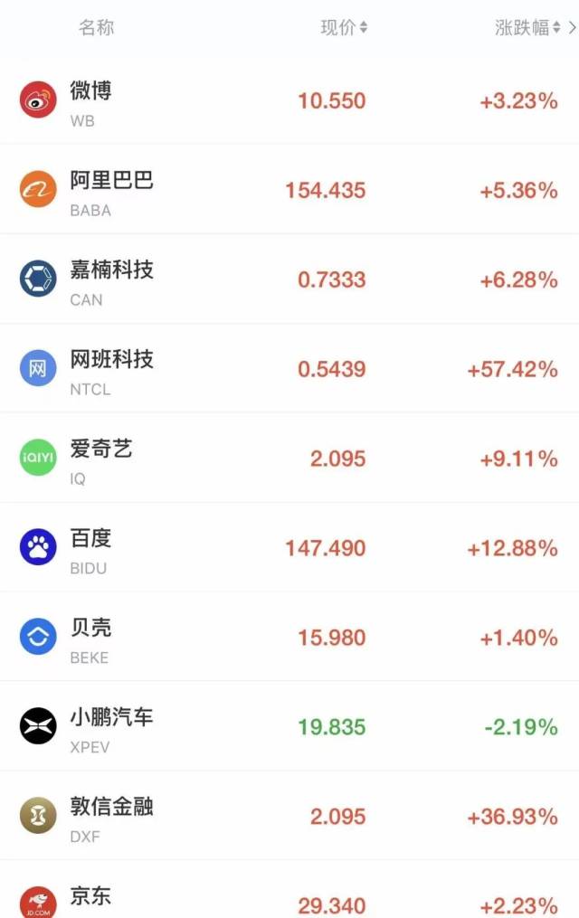 热门中概股全线走高,截至发稿,纳斯达克中国金龙指数大涨近4%,百度集团暴涨超12%,爱奇艺涨超9%,万国数据大涨超8%,晶科能源、霸王茶姬、世纪互联大涨超7%,富途控股、网易、哔哩哔哩大涨超6%,阿里巴巴、金山云大涨超5%,携程、腾讯音乐、微博等涨超3%。